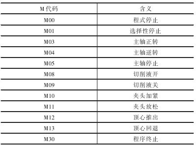 一個(gè)完整的數(shù)控加工程序由開始符、程序名、程序加工指令、結(jié)束符等組成。常用的指令有:G 功能(準(zhǔn)備功能)、M功能(輔助功能)、F功能(進(jìn)給功能)、S功能(主軸旋轉(zhuǎn)功能)、T功能(刀補(bǔ)功能)等指令。G功能(準(zhǔn)備功能):使機(jī)床和數(shù)控系統(tǒng)之間建立起某種加工方式的指令,分為模態(tài)代碼和非模態(tài)代碼。M 功能(輔助功能):控制機(jī)床及其輔助裝置的開、關(guān)功能的一種命令,如開、停冷卻泵;主軸正反轉(zhuǎn)、停轉(zhuǎn);程序結(jié)束;刀具的更換等功能。本文中 FT450 數(shù)控車床數(shù)控程序常用 G 功能、M功能的代碼及含義分別如表1、表2所示。